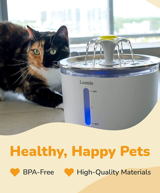 Elevate Your Pet's Hydration with the Premium Stainless Steel Cat Water Fountain - 85Oz Automatic Dispenser with LED Lights & 2 Replacement Filters for Cats and Dogs